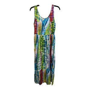 JAMS WORLD small paint abstract tie dye Aztec maxi dress pockets, pleated