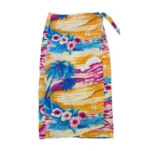 JAMS WORLD Vintage Wrap Skirt Sarong Adjustable Waist Rayon Paradise Hawaii | L