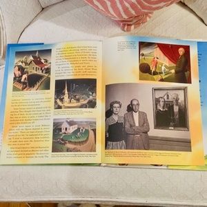 -Grant Wood became the father of regionalism, an artistic movement that celebrated the simple and real-life surroundings of the people. Back home in America, Grant asked his sister(Nan to whom the book is dedicated) and his dentist to pose for what would become the founding, iconic image of regionalism and a uniquely American work of art. Grant's art celebrated hard-working Americans who finally saw themselves in fine art.