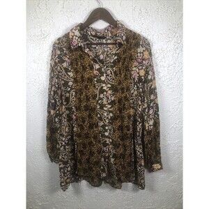 JANE AND DELANCEY SZ XL Geometric Stripe Pintuck Pleated Button Down Tunic BOHO