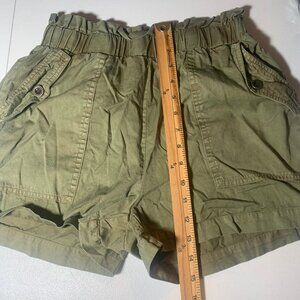 JANE AND DELANCEY SIZE WOMENS SMALL PAPER BAG SHORTS POCKETS OLIVE ARMY GREEN 3 INCH INSEAM HIGH WAIST CASUAL