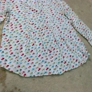 JANE & DELANCEY Flowy Ruffle Rainbow Watercolor Heart Button Up Roll Tab Sleeve Blouse Women Medium