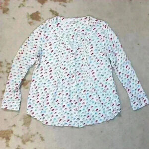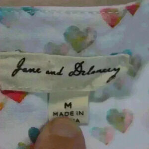 JANE & DELANCEY Flowy Ruffle Rainbow Watercolor Heart Button Up Roll Tab Sleeve Blouse Women Medium