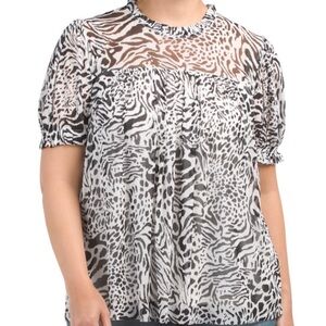 JANE & DELANCEY Mesh Ruffle Neck Blouse Animal Print Gray Black Plus Size 1X