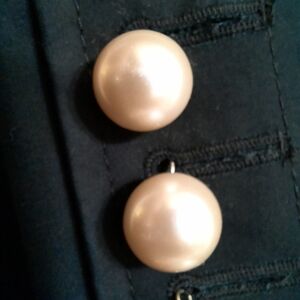 Jane Post trench in size large. True to size with enough room to wear a sweater without constriction. 100% cotton. Black body with white trim. Oversized pearl buttons on sleeve. Single breasted, concealed snaps, and pockets. Half belt on back. Pink partial lining. Tailoring is well done. New and includes spare pearl buttons.