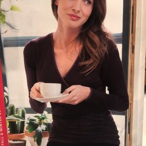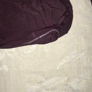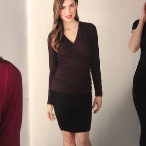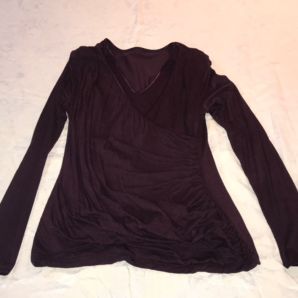 Long sleeve top in “wine heather” with ruching on the side and built-in shaping slip that hugs your core