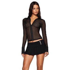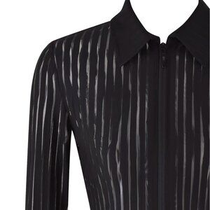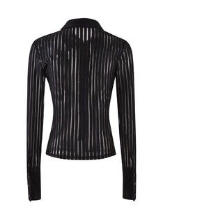 Black dressy shirt in specialty mesh and jersey fabrication - Fabric has sheer and opaque stripes