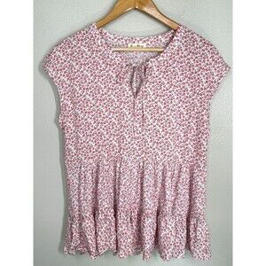 JANE and DELANCEY Anthropologie Red Floral Babydoll Top Size M Tiered Blouse