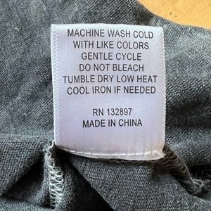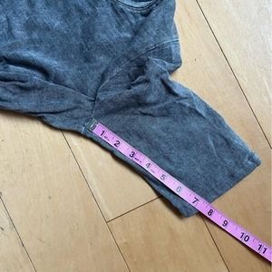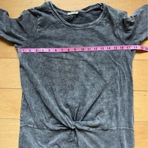 Jane and Delancey tunic top, size small. Acid washed / distressed gray fabric with a twisted accent on the front and short sleeves that are a little bit longer and super flattering! A couple of small discolorations that I think are part of the distressed coloring and a tiny hole in seam in armpit where a tag might have been, please see pics for details and flat lay measurements. Smoke and pet free home. Thanks!
