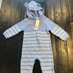 JANIE AND JACK BABY STRIPED BEAR EAR HOODED ONE-PIECE