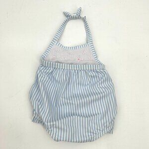 JANIE AND JACK Blue White Striped Pink Flower Halter Baby Swim Suit 3-6 Months
