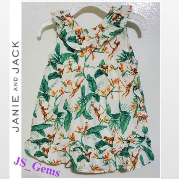 JANIE AND JACK 12 to 18M jungle kid girl sleeveless dress & matching diaper cover set. A vacation stand out!
