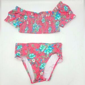 JANIE AND JACK FLORAL PUFF SLEEVE 2-PIECE SWIMSUIT IN PINK TART FLORAL SIZE 4