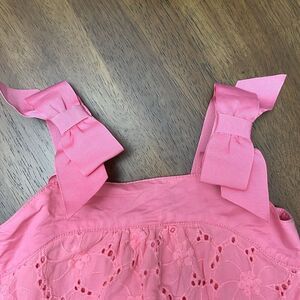 Janie and Jack Girls Size 6-12 Months Eyelet Dress In Like New Condition 100% Cotton Lining is 100% Cotton and Straps are Polyester