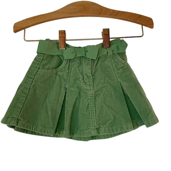JANIE AND JACK Girl’s Green Corduroy Pleated Skirt with Bow Belt/Size: 12-18 Mos