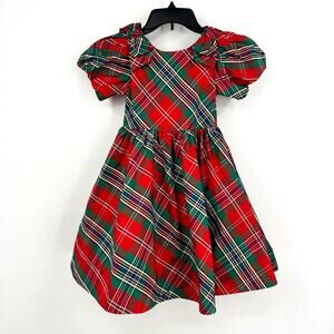 JANIE AND JACK Girls Holiday Plaid Dress Size 6 Red Green Short Sleeve NWT