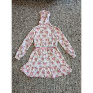 Janie and Jack pink and white floral knit sweater dress with hood in girls size 10. This cute dress is in very good used condition with minimal wear.