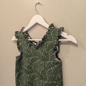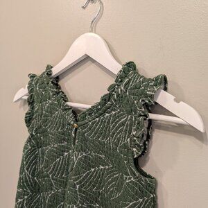 *Janie and Jack, Ivy Leaf Ruffle Trim Dress, V-Neck, Cotton Blend, Creeping Ivy Leaf Print, Sleeveless, Soft Stretch Jacquard, Keyhole Button Back, Girls' Fashion, Children's Clothing, Elegant Dress, Comfortable Fit, Machine Washable, Casual Wear, Special Occasion Dress, Spring Fashion, Summer Dress, Toddler Dress, Kids' Apparel, Floral Print Dress, Boutique Children's Clothing