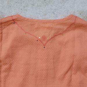 100% cotton, embroidered with gold embellishments, 3 buttons at neck.