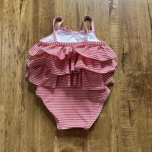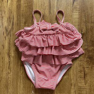 JANIE AND JACK Red White Striped Ruffle Rash Guard Swim Shirt Size 3-6 Months.