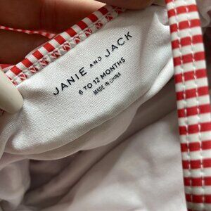 JANIE AND JACK Red White Striped Ruffle Rash Guard Swim Shirt Size 3-6 Months