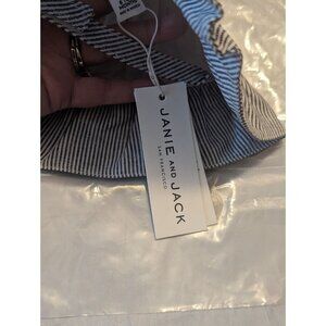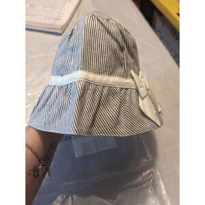 JANIE AND JACK girls seersucker blue white sunhat with bow and strap 6-12months