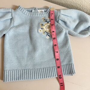 JANIE AND JACK light blue flower applique puff sleeve sweater sz 6-12 months
