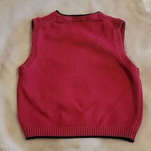 JANIE AND JACK RED SWEATER VEST WITH EMBROIDERED TRAINS, SIZE 18-24 MONTHS