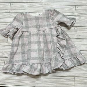 JANIE & JACK PLAID RUFFLE DRESS GREY/PINK 3 to 6 MONTHS GIRL