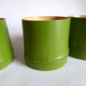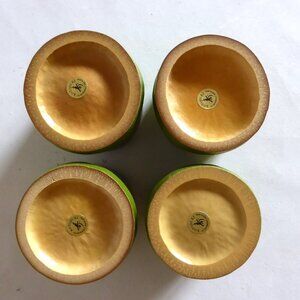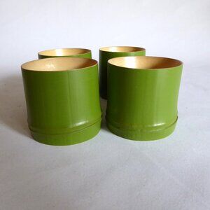 New, never used for their purpose, Japanese, (Made in Japan), Kotobuki brand, Watataka bamboo sake cups. The outside of the cups appear to be a vibrant green lacquer. (See photos for details) I am the original owner. It has been in climate controlled storage for decades. Comes from a pet and smoke free home.