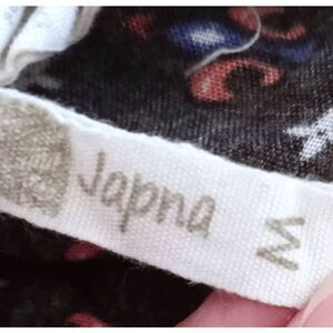 JAPNA BLACK, RED, WHITE, & BLUE BOHO-INSPIRED OFF-THE-SHOULDER TOP SZ.M EUC.