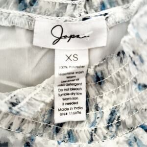 Elevate your style with this beautiful Japna Blue and White Patterned Blouse in size Extra Small. Made of 100% polyester, this blouse is machine washable for easy care.