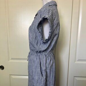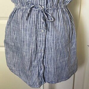 JAPNA Blue White Striped Button Front Elastic Waist Dress Blouson Top Size Large