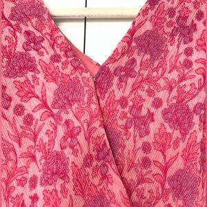 Embrace elegance with this floral pink wrap top. Perfect for any occasion, it offers a stylish and comfortable fit.