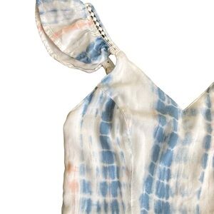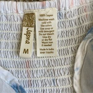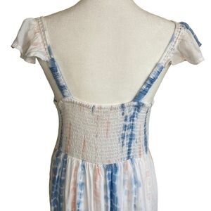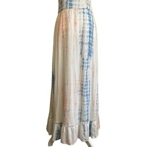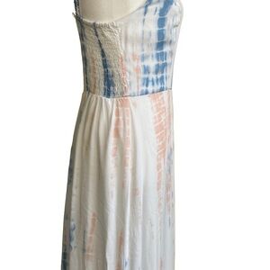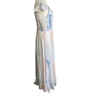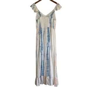 JAPNA Tie Dye Smocked Crochet Maxi Dress Ruffled Cap Sleeves White/Blue/Pink M