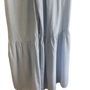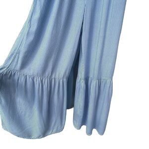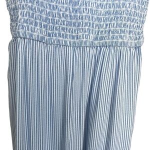 JAPNA WOMENS SMOCKED BODICE JUMPSUIT BLUE WHITE PINSTRIPES FLARE WIDE LEG SZ M