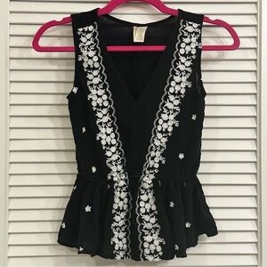 Japna Size XS Black with white embroidery Peplum style 100% rayon Gently used