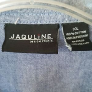 Jaquline Design Studio Denim Look Shirt Dress/Tunic Pocket Front Long Sleeve with option to roll up Womens Size XL. Excellent quality and condition .no flaws or defects. refer to photos for measurements