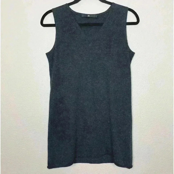 JARBO Women's Small V-Neck Sweater Tank Knit Silk Cashmere Charcoal Grey Minimal