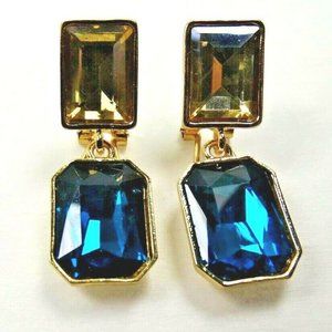 Jardin design gold plated and multi-color glass dangle earrings are 9/16" wide at widest point, 1.5" long with omega and butterfly fastening.