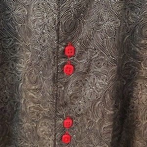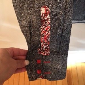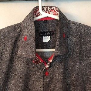 JARED LANG SIZE LARGE BLACK PRINT LONG SLEEVE RED BUTTON SHIRT RED PRINTED CUFFS