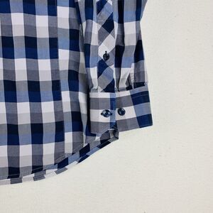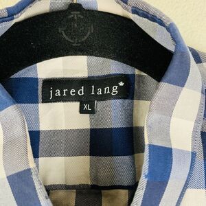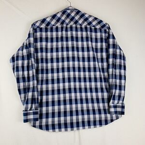 JARED LANG Women's Blue White Plaid Long Sleeve Button Down 100% Cotton Shirt XL