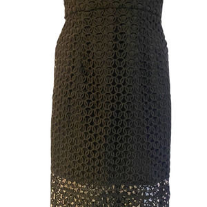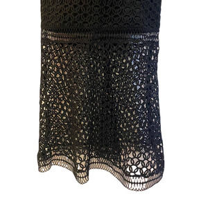 Serious, upscale, black crochet, special occasion dress that can be dressed down simply by pairing with boots or flats and a denim jacket (great for the morning after a crazy night on the town).