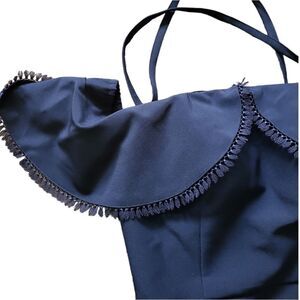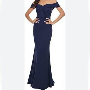 JARLO London Navy Cold Shoulder Mermaid Maxi Dress Lace Accent Size 8, NWT