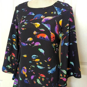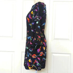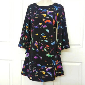 JARLO Mary Bird Print Dress in Black by Revolve. Self & Lining: 100% polyester. Lined. Flared sleeve. Back zipper closure.