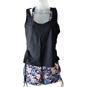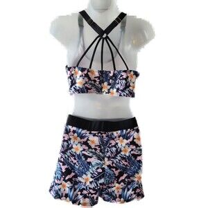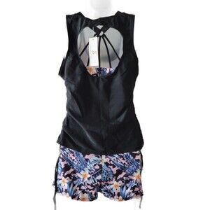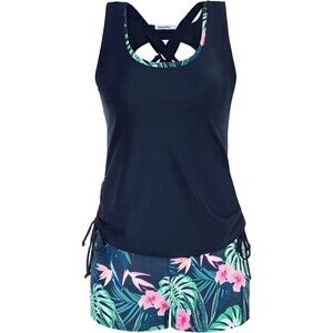 JASAMBAC 3 Piece Floral Print Athletic Tankini Swimsuits with Boyshort Sz M