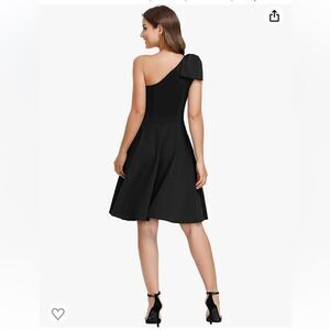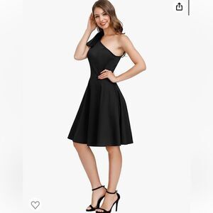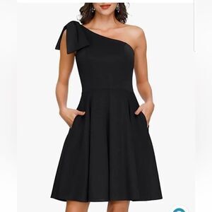 JASAMBAC Bow One Shoulder Dress with Pockets A-line Cocktail Party Dress Sz-L
