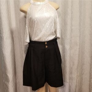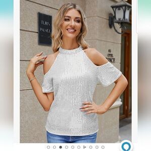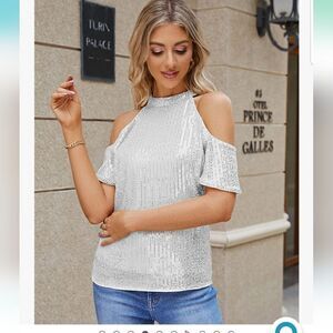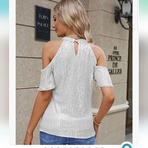 JASAMBAC Women's Sequin Halter Tops Cold Shoulder Slim Fit Sparkly Cocktail Party Club Dressy Tunic Tops
