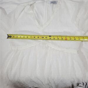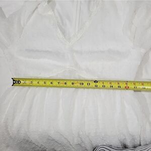 excellent condition zips in back lined does not stretch refer to measurements sheer sleeves