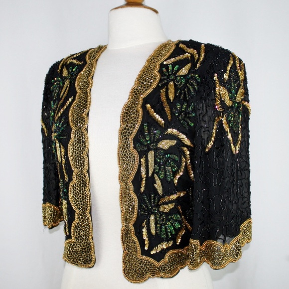 JASDEE Vintage Bolero Jacket Hand Work Beaded & Sequins On Silk Style 3041